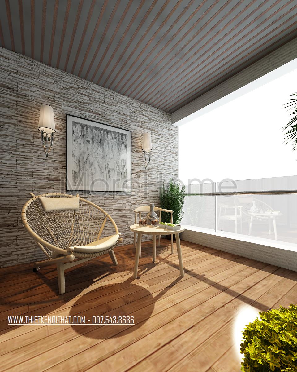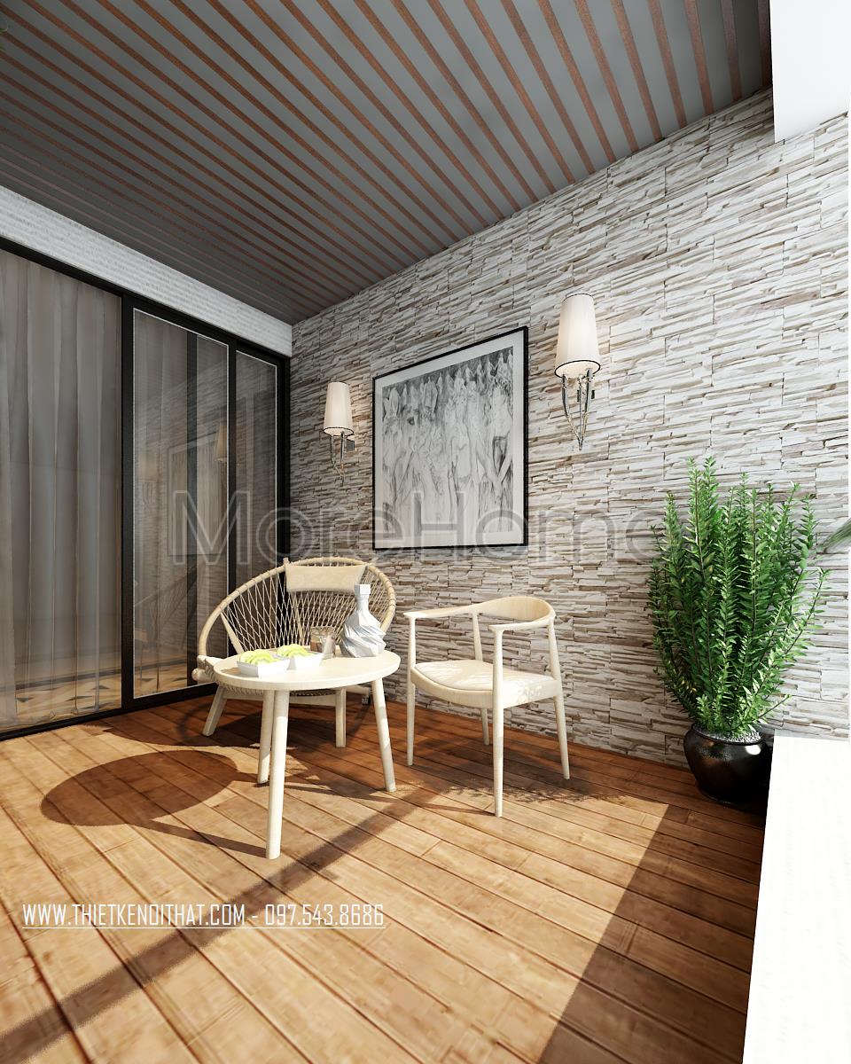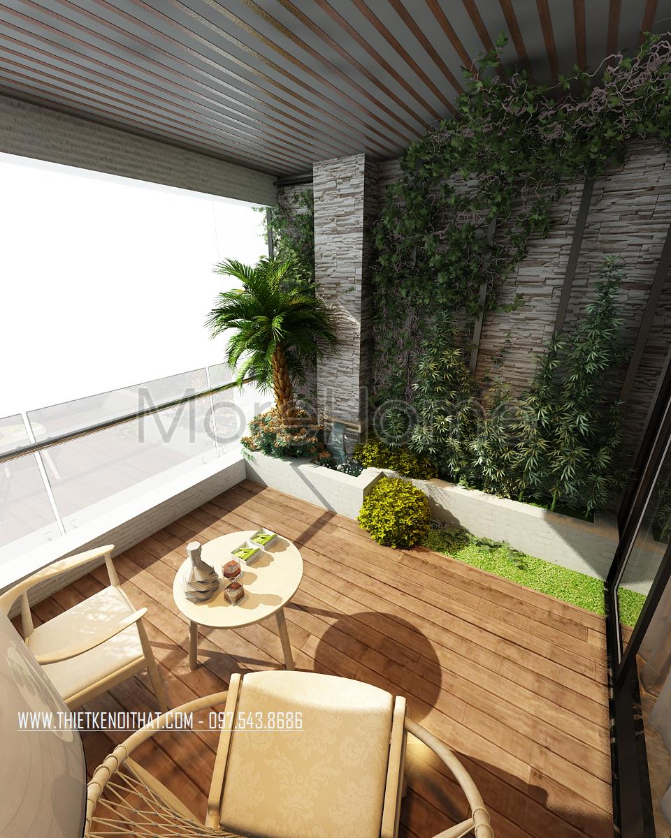 Cuối cùng là thiết kế ban công với vẻ đẹp xanh mát, dễ chịu. Không gian thiết kế xanh mang đến cho gia chủ cảm giác thư giãn sau một ngày dài làm việc. Với tầm nhìn rộng, trải dài, thiết kế ban công không cần quá cầu kỳ chỉ cần một bộ bàn ghế chất liệu tự nhiên và khu vườn treo sáng tạo cũng đủ trở thành không gian yêu thích nhất của gia chủ.