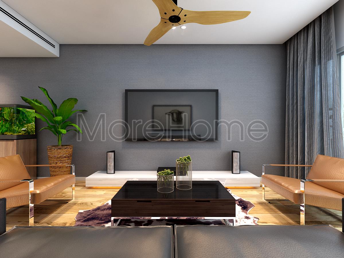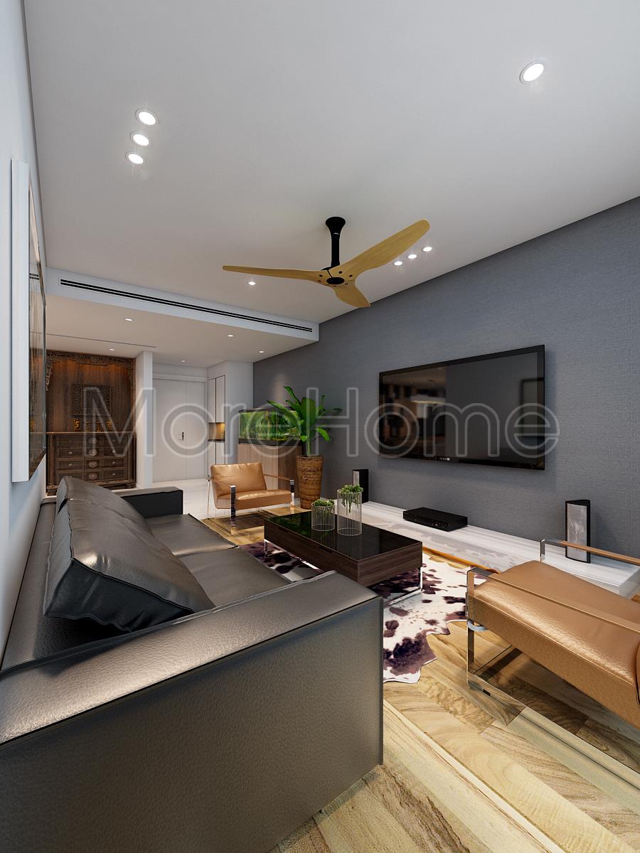Thiết kế nội thất phòng khách khá đơn giản với các tone màu sáng và tối sử dụng linh hoạt mang đến cảm giác cân bằng, tránh sự gò bó và đơn điệu. Không gian phòng khách tận dụng tối đa ánh sự tự nhiên từ bên ngoài mang mang lại sức sống cho căn phòng và tăng độ thoáng, mở rộng view cho khu sinh hoạt chung. Thiết kế không đi nặng vào chi tiết mà tập trung hơn vào hai yếu tố là không gian và ánh sáng. Hệ thống tủ gỗ và kệ được tối giản thể hiện rõ nét cá tính của gia chủ bên cạnh đó lại tiết kiệm được một không gian không nhỏ cho việc vui chơi và sinh hoạt.