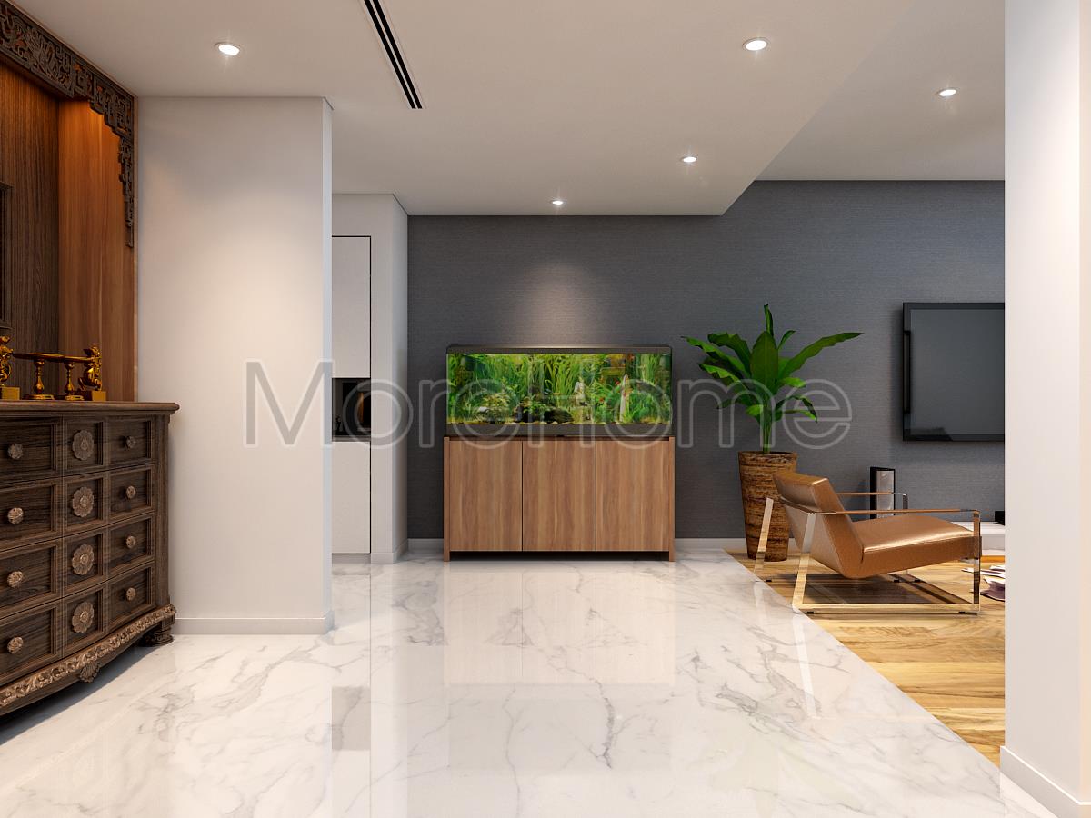 Căn chung cư hiện đại cao cấp của chị Lan được thiết kế với tone màu sáng là chủ yếu mang đến cảm giác cơi nới cho không gian sinh hoạt chung. Các vật liệu nhẹ như gỗ tự nhiên hay kính cường lực được kiến trúc sư ưu tiên sử dụng mang đến cảm giác thanh thoát và linh hoạt trong thi công, mà vẫn đảm bảo tính công năng và thẩm mỹ cho không gian sống.
