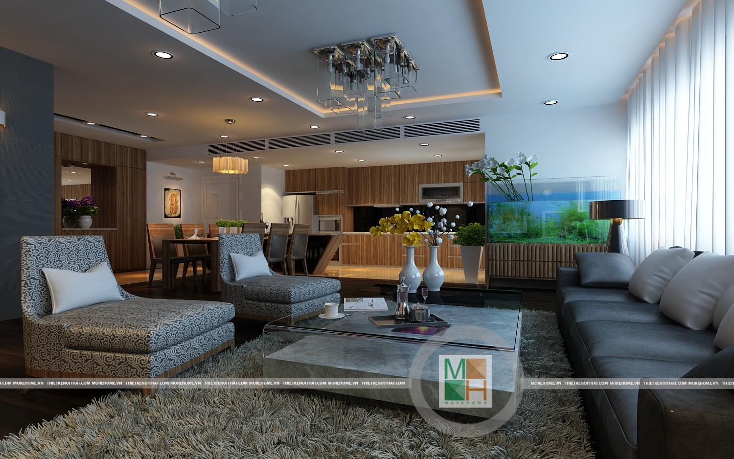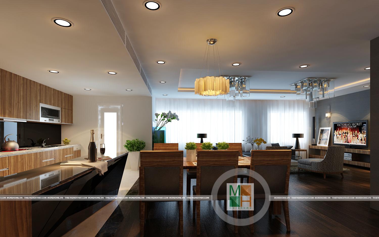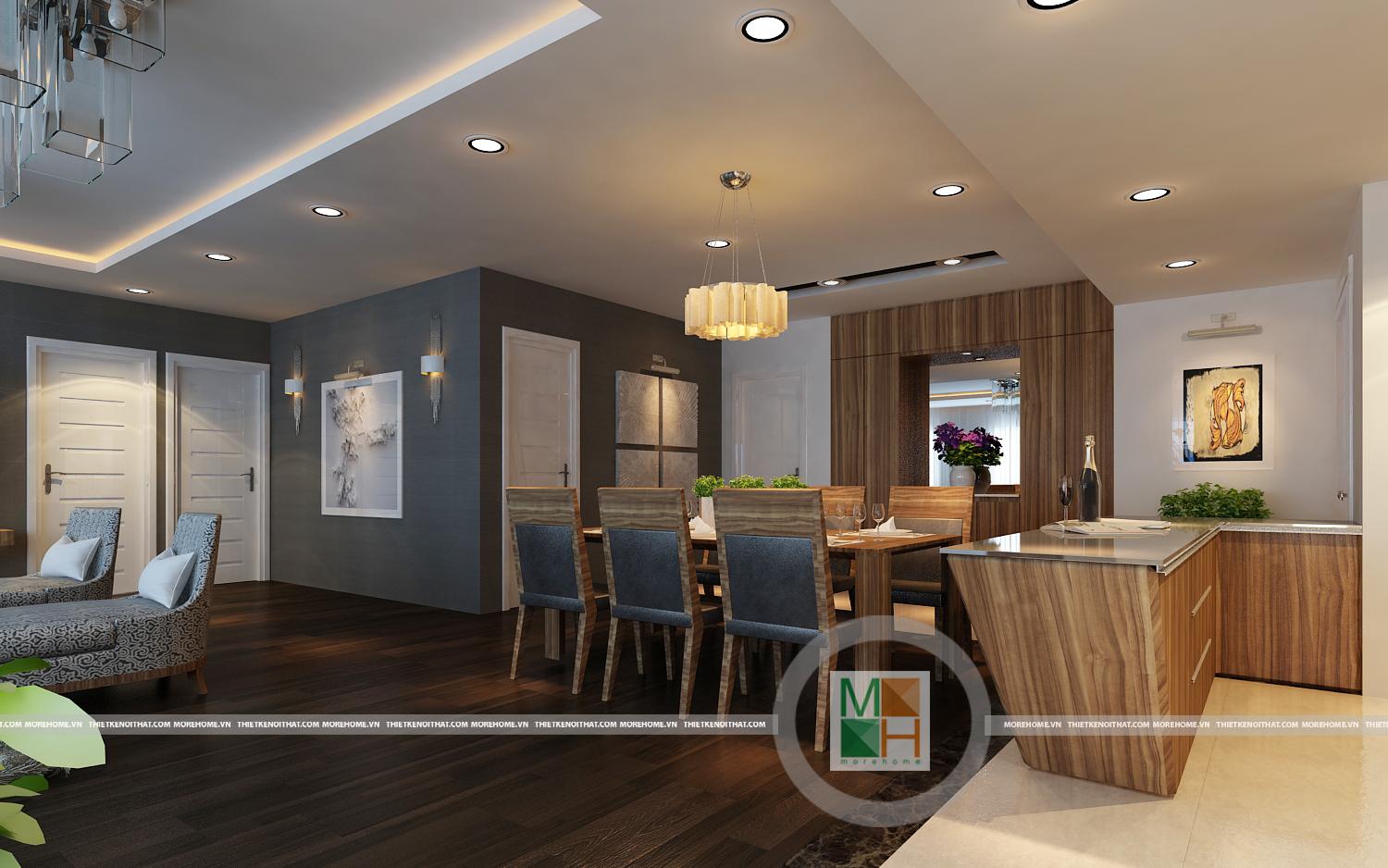 Thiết kế chung cư hiện đại mang đến cho gia chủ một không gian sống thân thiện, trẻ trung và gần gũi là yêu cầu mà kiến trúc sư Morehome nhận được khi bắt tay vào thiết kế căn chung cư này. Căn nhà với một diện tích hợp lý để thiết kế một căn chung với một phòng khách rộng, khu bếp và phòng ăn hiện đại, sang trọng, hai phòng ngủ với thiết kế tiện nghi và thoải mái.