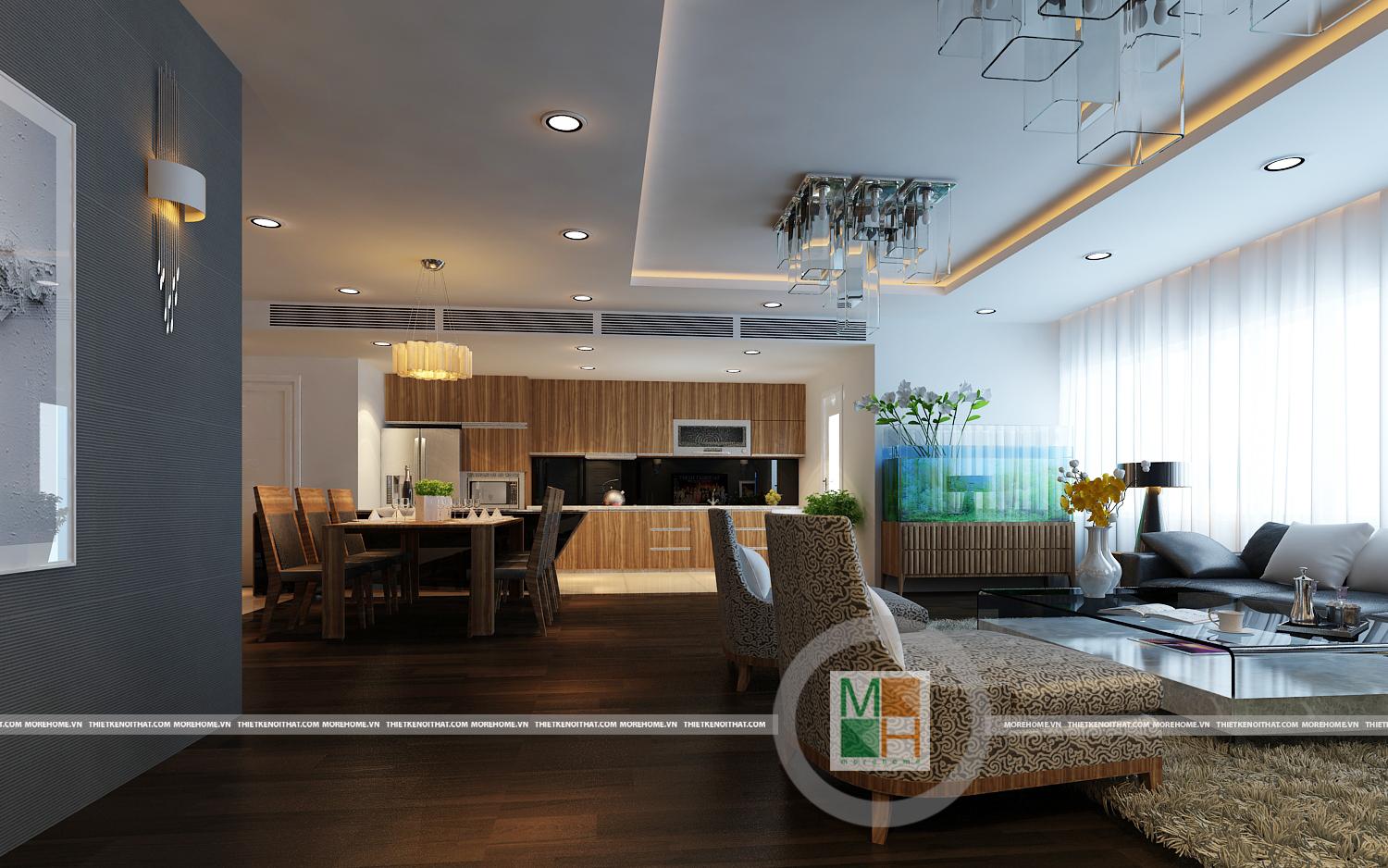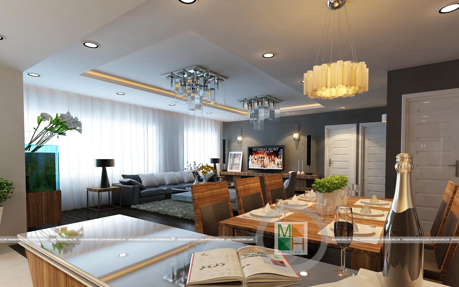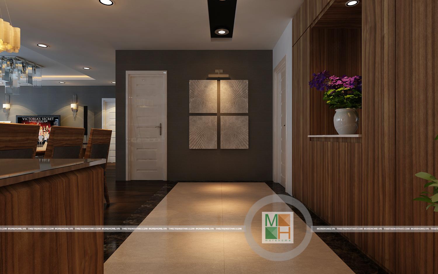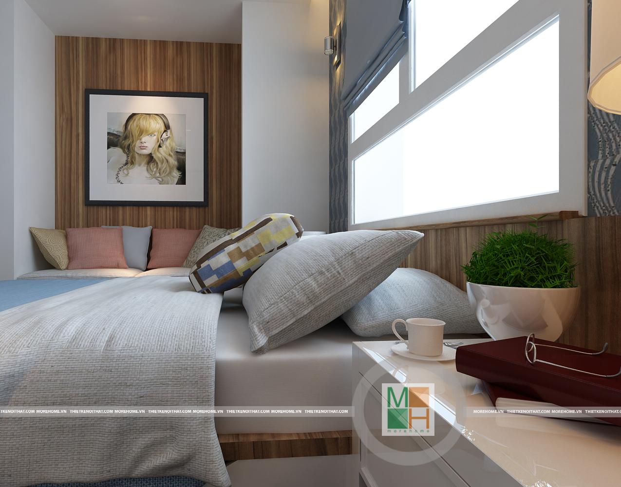 Thiết kế chung cư hiện đại mang đến cho gia chủ một không gian sống thân thiện, trẻ trung và gần gũi là yêu cầu mà kiến trúc sư Morehome nhận được khi bắt tay vào thiết kế căn chung cư này. Căn nhà với một diện tích hợp lý để thiết kế một căn chung với một phòng khách rộng, khu bếp và phòng ăn hiện đại, sang trọng, hai phòng ngủ với thiết kế tiện nghi và thoải mái.