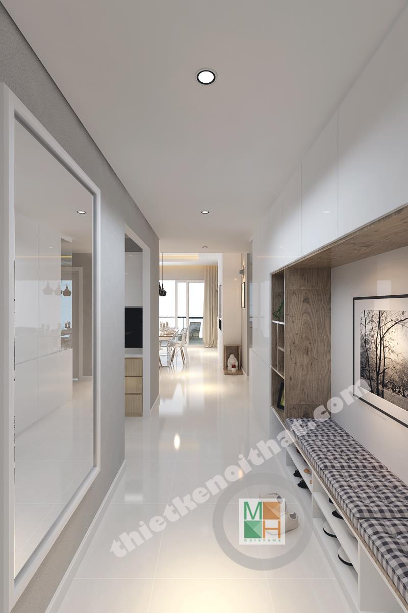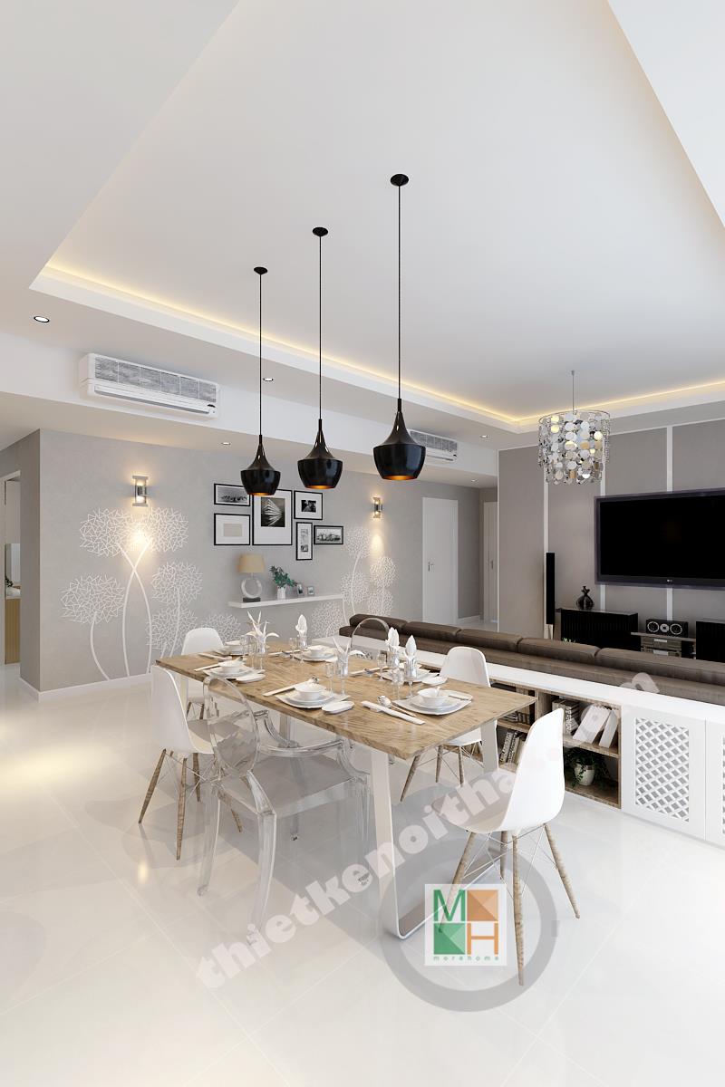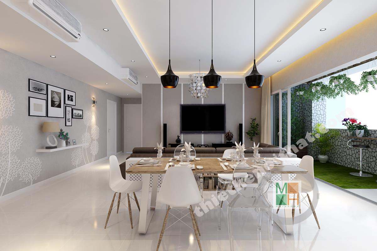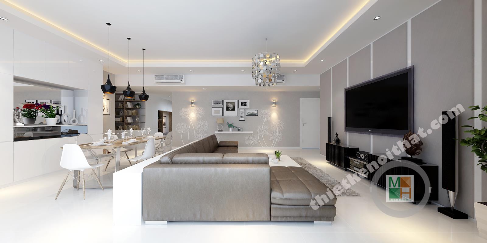 Thiết Kế Nội Thất Chung Cư Hiện Đại có màu sắc trung tính, đen và trắng là những màu chủ đạo trong thiết kế nội thất trường phái này. Đặc điểm dễ nhận biết nhất của phong cách này là sử dụng các đường thẳng, tận dụng các thành phần của kết cấu như một yếu tố trang trí. Bên cạnh đó, việc ưu tiên sử dụng các tone màu sáng và cơ bản kết hợp với đường nét nhẹ nhàng, không rườm rà trong chi tiết hay kiểu cách chính là một trong những biện pháp giúp tạo cảm giác cơi nới cho không gian hẹp và tăng độ mở cho căn phòng.