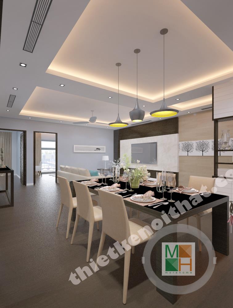 Hiện đại và ấn tượng khi sử dụng màu sắc tương phản là điểm nổi bật trong mẫu thiết kế nội thất chung cư Royal City này.