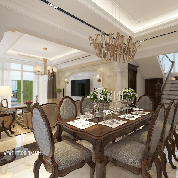 Thiết kế nội thất tân cổ điển biệt thự cao cấp được hoàn thiện bởi Morehome - một đơn vị uy tín chuyên nhận thiết kế thi công nội thất biệt thự và nhiều hạng mục khác. Morehome luôn đem đến cho gia chủ những không gian vô cùng tiện nghi, đẳng cấp khiến cho gia chủ hết sức hài lòng.